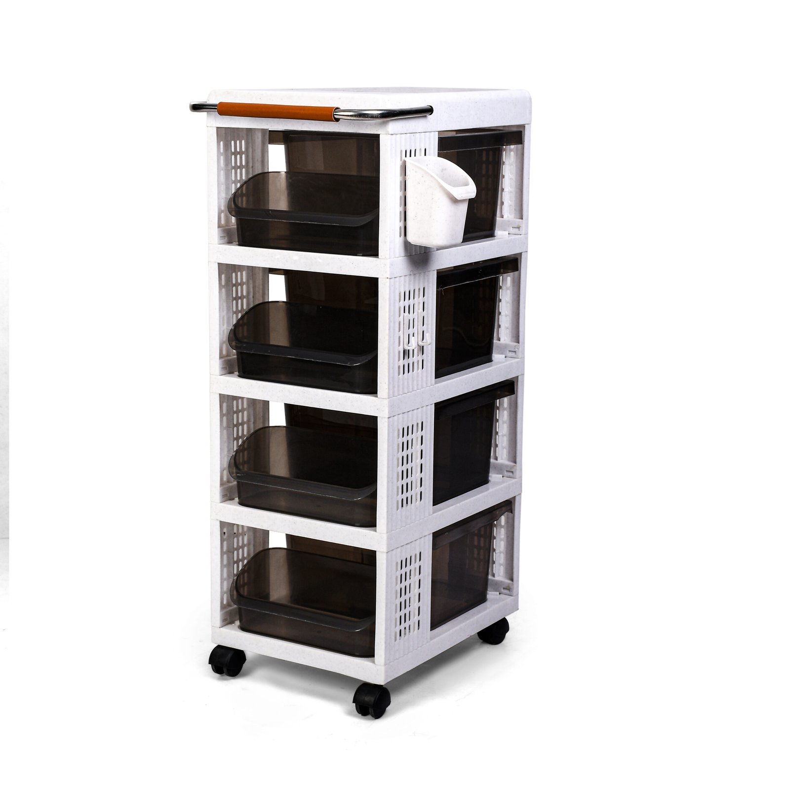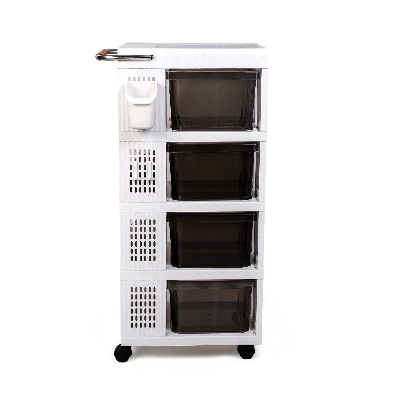 Featuring four spacious drawers, it offers plenty of room to neatly store a variety of items—whether it’s clothing, kitchenware, toiletries, cosmetics, office supplies, or kids’ essentials. The drawers slide in and out smoothly, making it easy to access and organize your belongings.